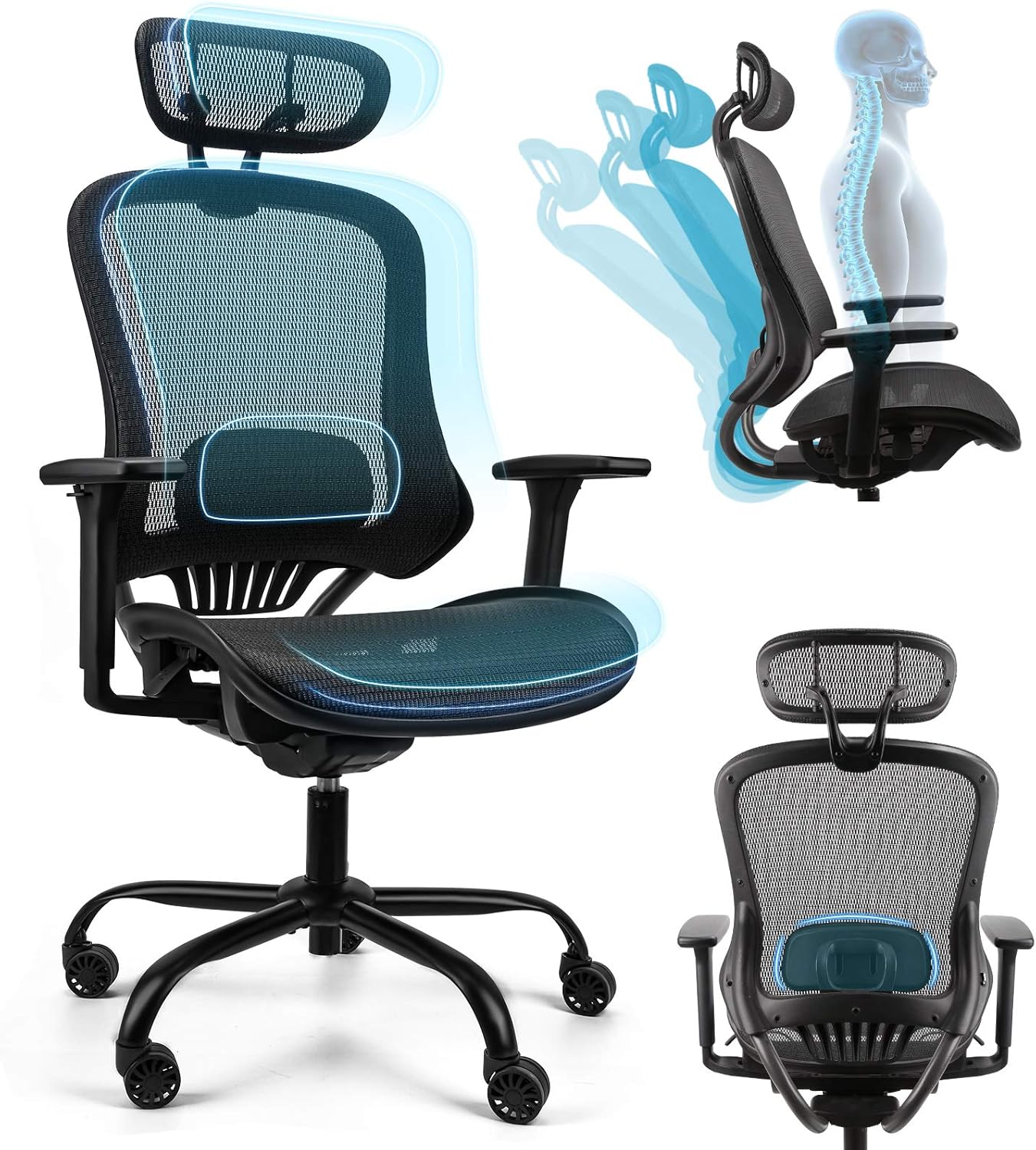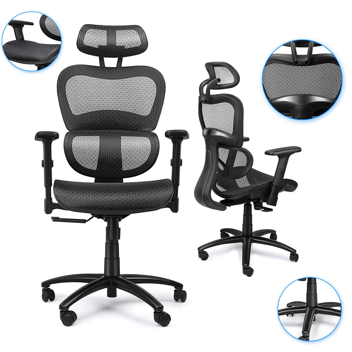 Komene Mesh Office Chair-ErgoPro Ergonomic Office Chair with Lumbar Support Adjustable headrest and 3D Armrest High Back Mesh Computer Chair Rolling Home Desk ChairExecutive Swivel Chair Black 36999-25499lightning deal.